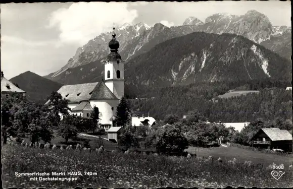 Ak Haus Liezen Steiermark, Kirche mit Dachsteingruppe