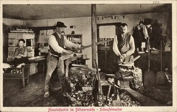 Ak Hausindustrie im Böhmerwalde, Schaufelmacher