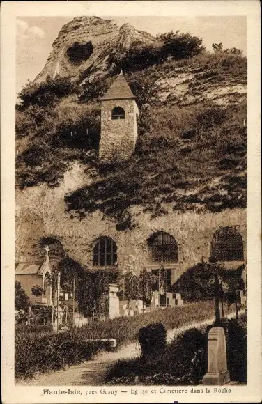 Ak Haute Isle Val-d’Oise, Eglise et Cimetiere dans la Roche