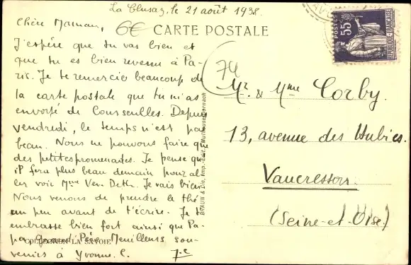 Zustand, siehe Scan, gelaufen, 1938 - ca 14 cm X 9 cm