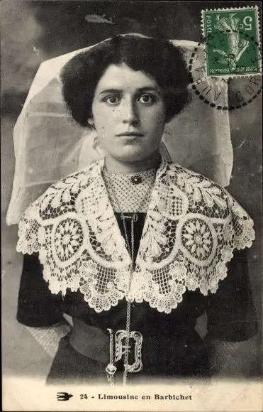 Ak Haute Vienne Frankreich, Limousine en Barbichet, Frau in Tracht, Portrait