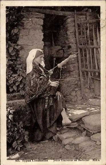 Ak Haute Vienne Limousin, junge Frau in Tracht, Spindel
