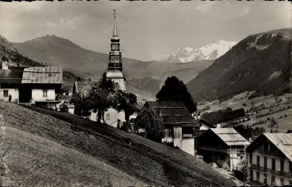 Ak Hauteluce Savoie, Teilansicht, Turm, Gebirge