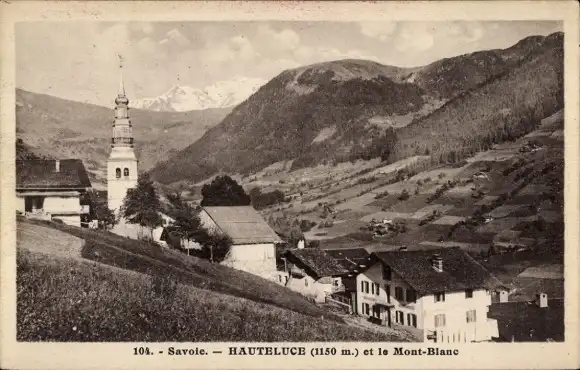 Ak Hauteluce Savoie, Teilansicht, Turm, Gebirge