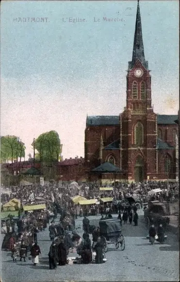 Ak Hautmont Nord, Kirche, Marktleben