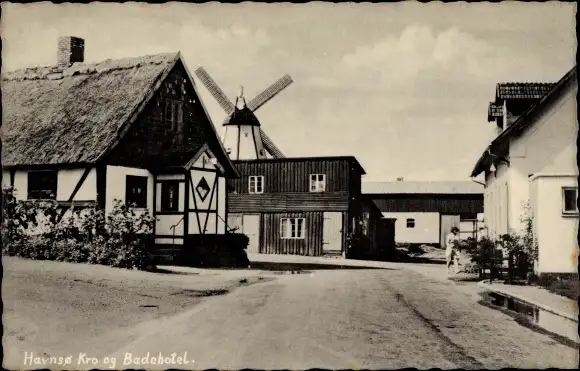 Ak Havnsø Dänemark, Kro og Badehotel, Windmühle