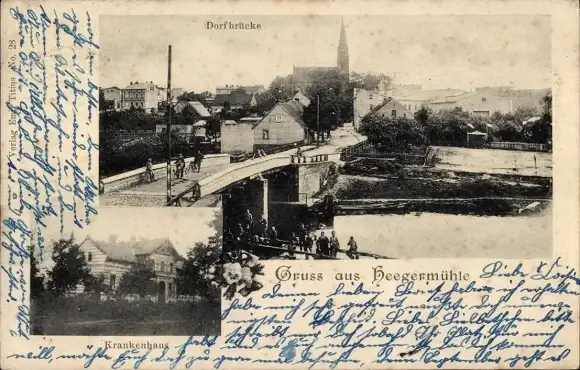 Ak Heegermühle Finow Eberswalde in der Mark, Dorfbrücke, Krankenhaus
