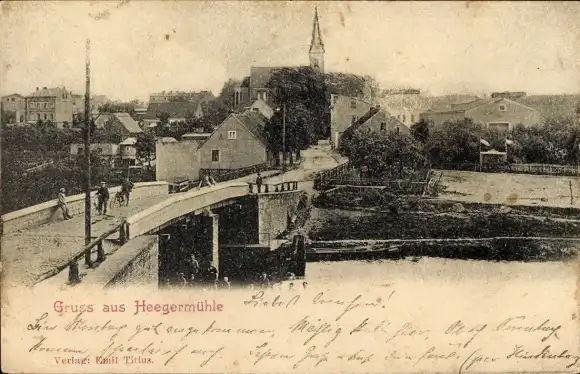 Ak Heegermühle Finow Eberswalde in der Mark, Gesamtansicht, Brücke