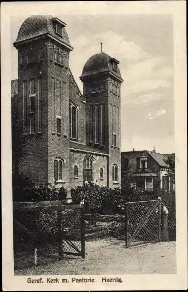 Ak Heerde Gelderland Niederlande, Kirche mit Pastorei
