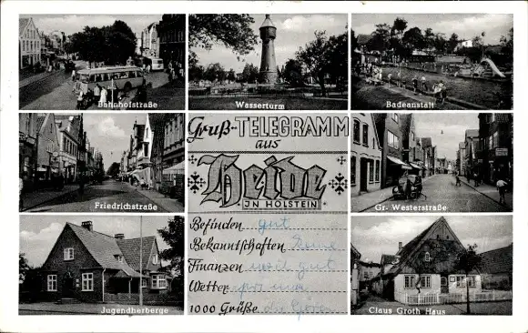 Ak Heide in Holstein, Bahnhofstraße, Wasserturm, Badeanstalt, Friedrichstraße, Claus Groth Haus