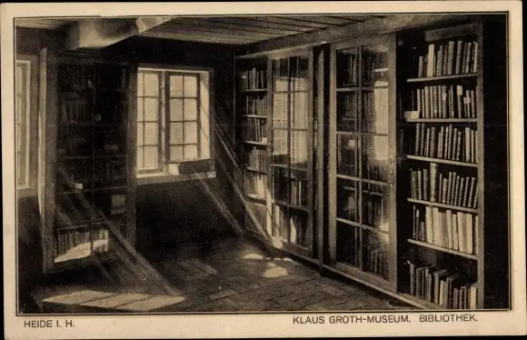 Ak Heide in Holstein, Innenansicht vom Klaus Groth Museum, Bibliothek