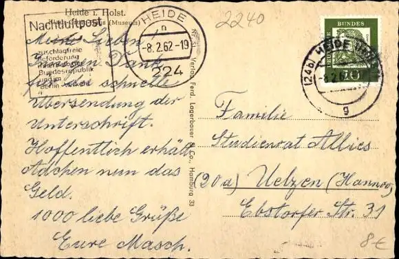 Zustand, siehe Scan, gelaufen, 1962 - ca 5 cm X 3 cm