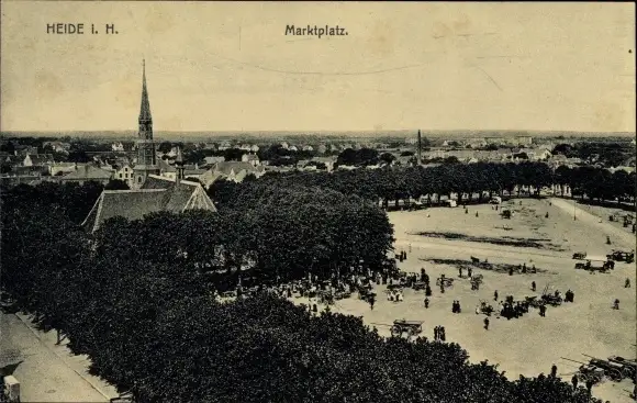 Ak Heide in Holstein, Marktplatz, Vogelschau