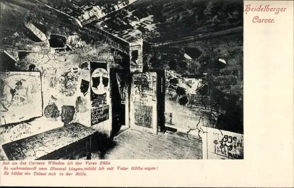 Ak Heidelberg, Karzer, Strafraum, Studenten, Wandbemalung, Innenansicht