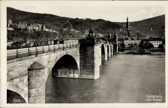 Ak Heidelberg am Neckar, Alte Brücke, Kirchturm