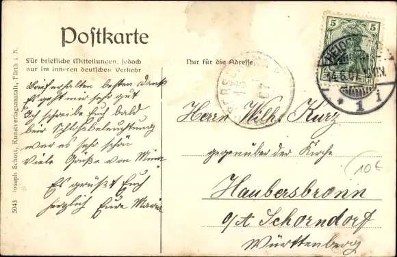 gelaufen 1907, fleckig, sonst guter Zustand