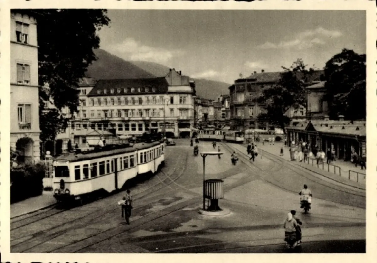 Ak Heidelberg am Neckar, Bismarckplatz, Straßenbahn, Menschen, Gebäude