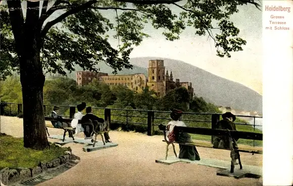 Ak Heidelberg am Neckar, Große Terrasse, Schloss