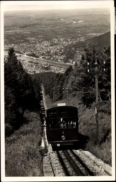 Ak Heidelberg am Neckar, Königstuhl, Blick auf Bergbahn und Stadt