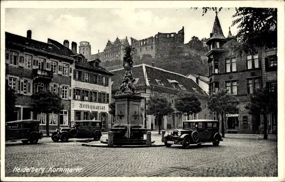 Ak Heidelberg am Neckar, Kornmarkt, Burg, Autos