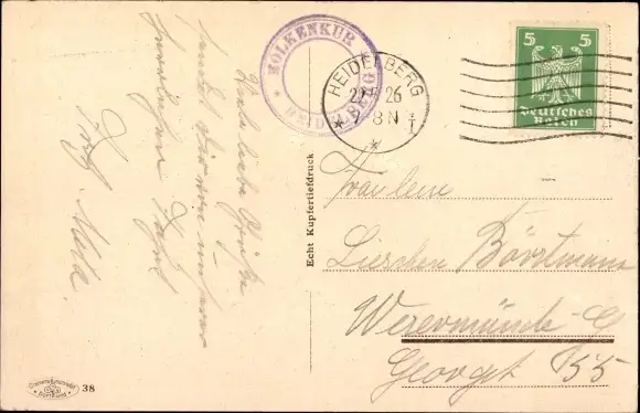 Zustand, siehe Scan, gelaufen, 1926 - ca 14 cm X 9 cm