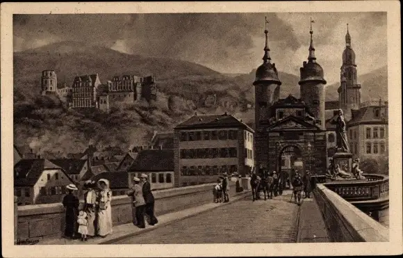 Ak Heidelberg am Neckar, alte Neckarbrücke, Schloss