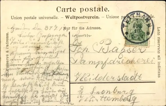 gelaufen 1910, Eckknick links oben, sonst guter Zustand
