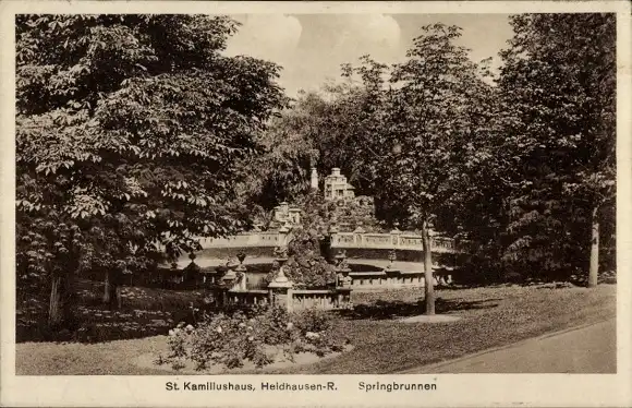 Ak Heidhausen Essen im Ruhrgebiet, St. Kamillushaus, Springbrunnen