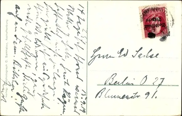 Zustand, siehe Scan, gelaufen, 1919 - ca 14 cm X 9 cm