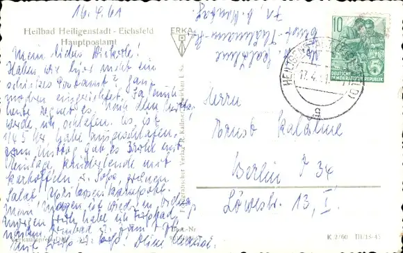 Zustand, siehe Scan, gelaufen, 1961 - ca 14 cm X 9 cm