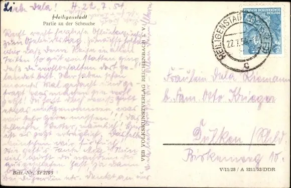 Zustand, siehe Scan, gelaufen, 1954 - ca 14 cm X 9 cm