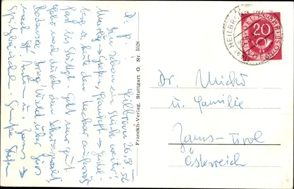 Zustand, siehe Scan, gelaufen, 1952 - ca 14 cm X 9 cm