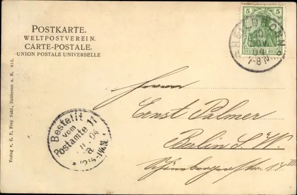 Zustand, siehe Scan, gelaufen, 1904 - ca 14 cm X 9 cm