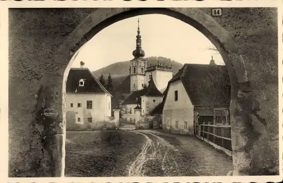 Ak Heiligenkreuz Niederösterreich, Tor, Kirchturm