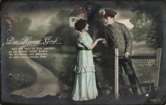 Ak Heimat-Gruß, Liebespaar, Soldat in Uniform, Treffen