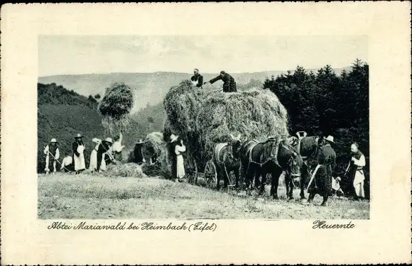 Ak Heimbach in der Eifel, Abtei Mariawald, Heuernte