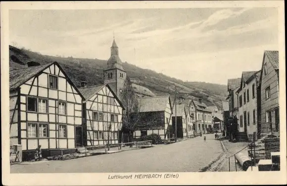 Ak Heimbach in der Eifel, Straßenpartie, Kirchturm