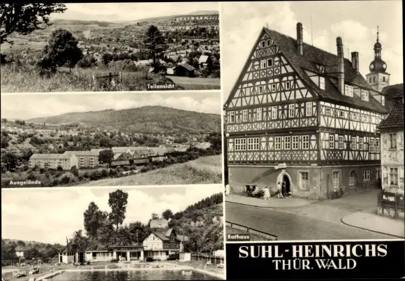 Ak Heinrichs Suhl in Thüringen, Teilansicht, Auegelände, Bad, Rathaus