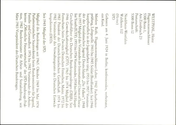 Ak Heinz Westphal, Politiker, Portrait, Autogramm