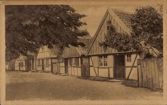 Ak Hel Hela Gdańsk Danzig, Fachwerkhäuser an der Straße