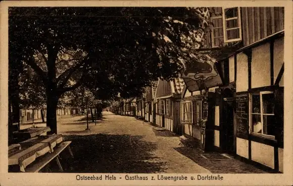 Ak Hel Hela Gdańsk Danzig, Gasthaus zur Löwengrube, Dorfstraße