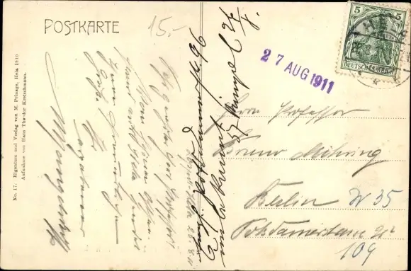 Zustand, siehe Scan, gelaufen, 1911 - ca 14 cm X 9 cm