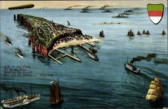 Ak Helgoland, Gesamtansicht der Insel, Wappen
