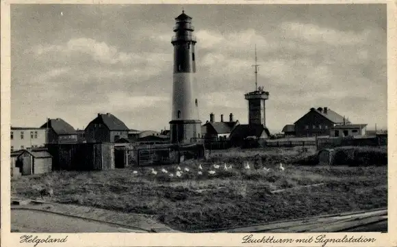 Ak Helgoland, Leuchtturm mit Signalstation