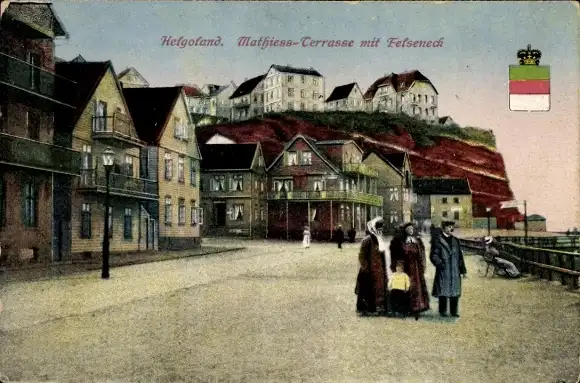 Ak Helgoland, Mathiess Terrasse mit Felseneck, Wappen