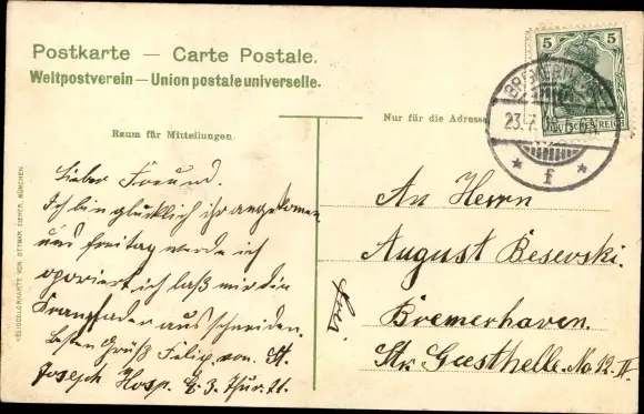 Zustand, siehe Scan, gelaufen, 1908 - ca 14 cm X 9 cm