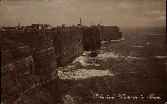 Ak Helgoland, Westküste bei Sturm, Leuchtturm