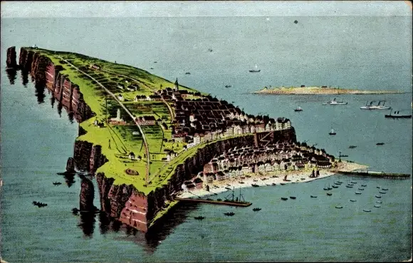 Ak Helgoland in Schleswig Holstein, Insel und Düne aus der Vogelschau