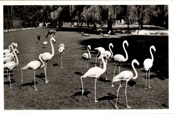 Ak Hellabrunn München Bayern, Tierpark, Flamingos