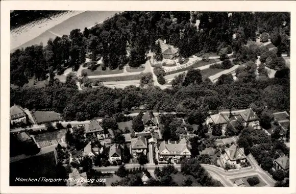 Ak Hellabrunn München Bayern, Tierpark, Fliegeraufnahme